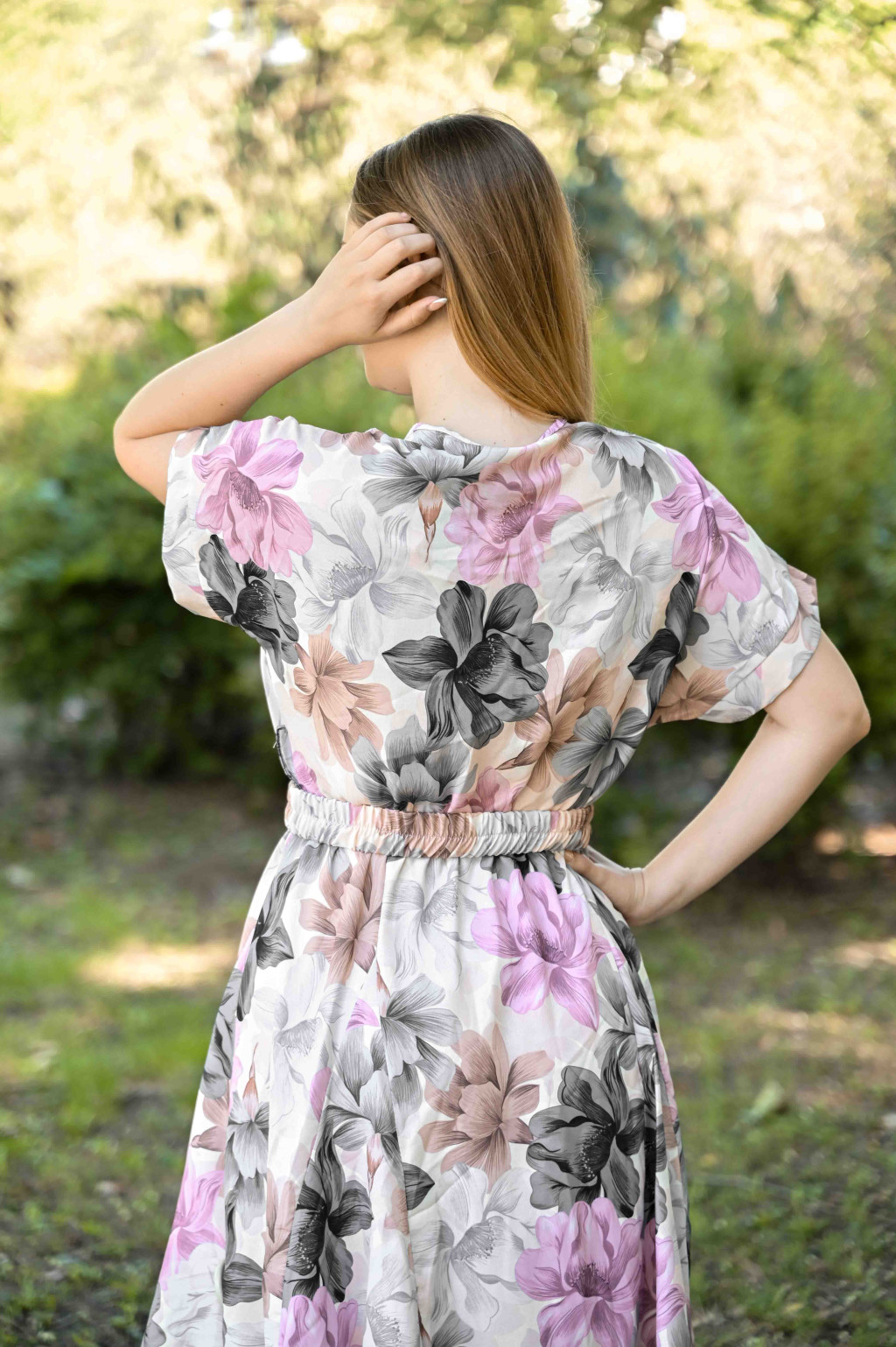Modell mérete: A képen szereplő modell 168 cm magas, és általában 38–40-es méretet visel.