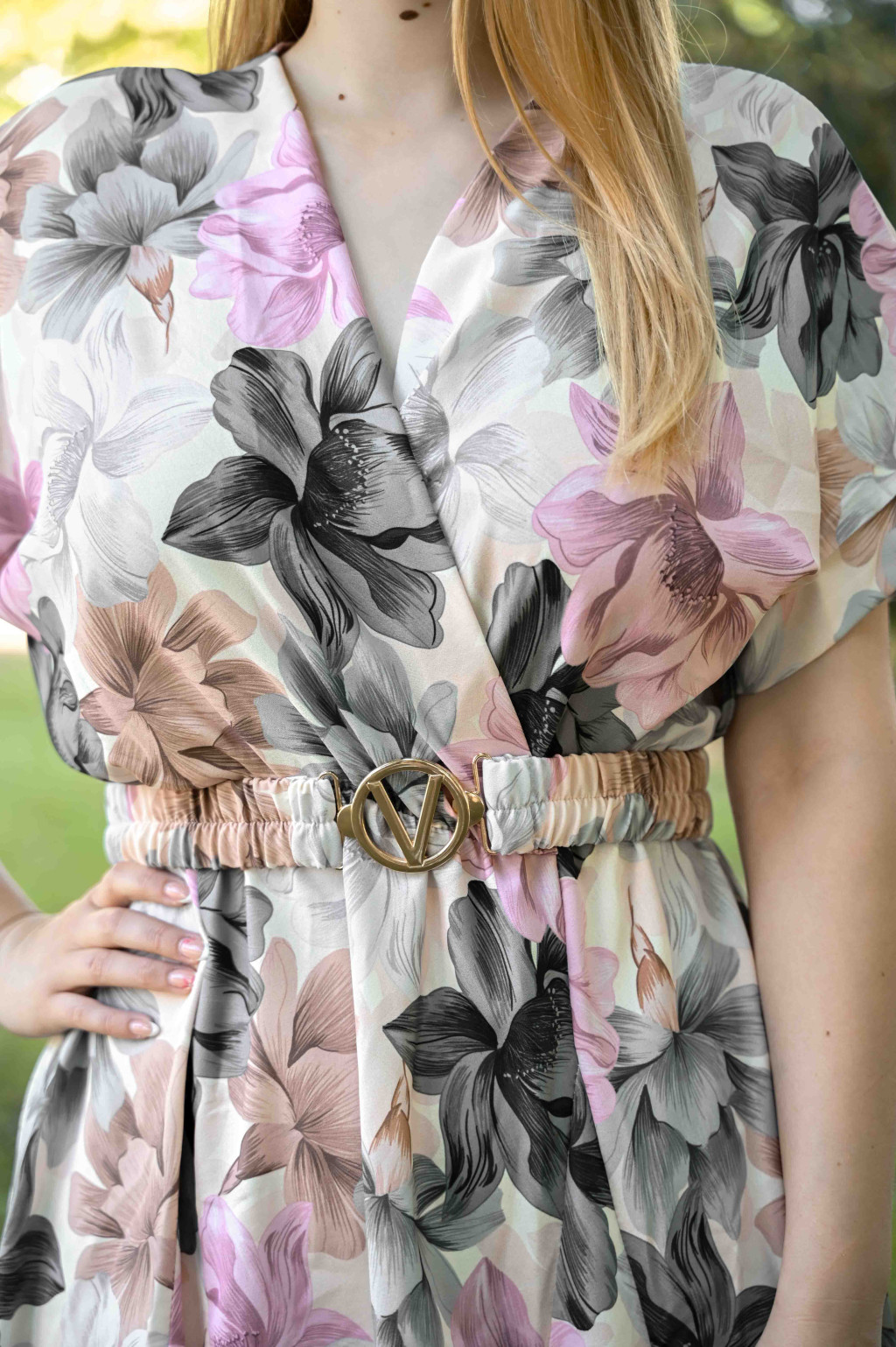 Kialakítás: V nyakú, övvel